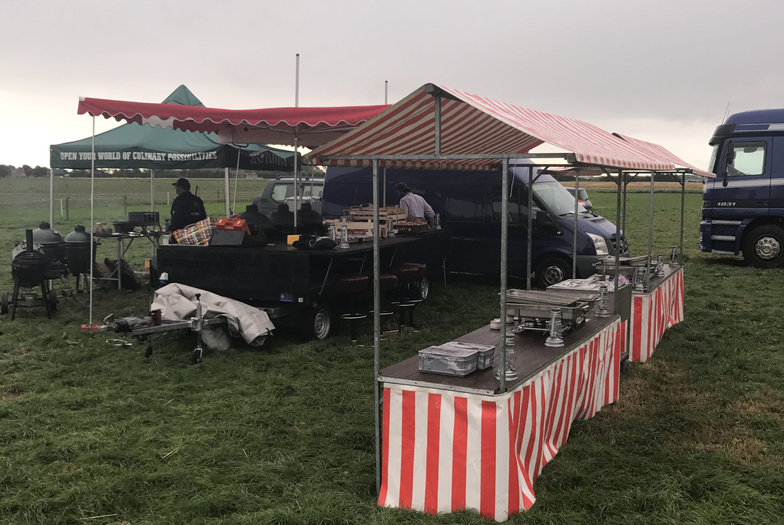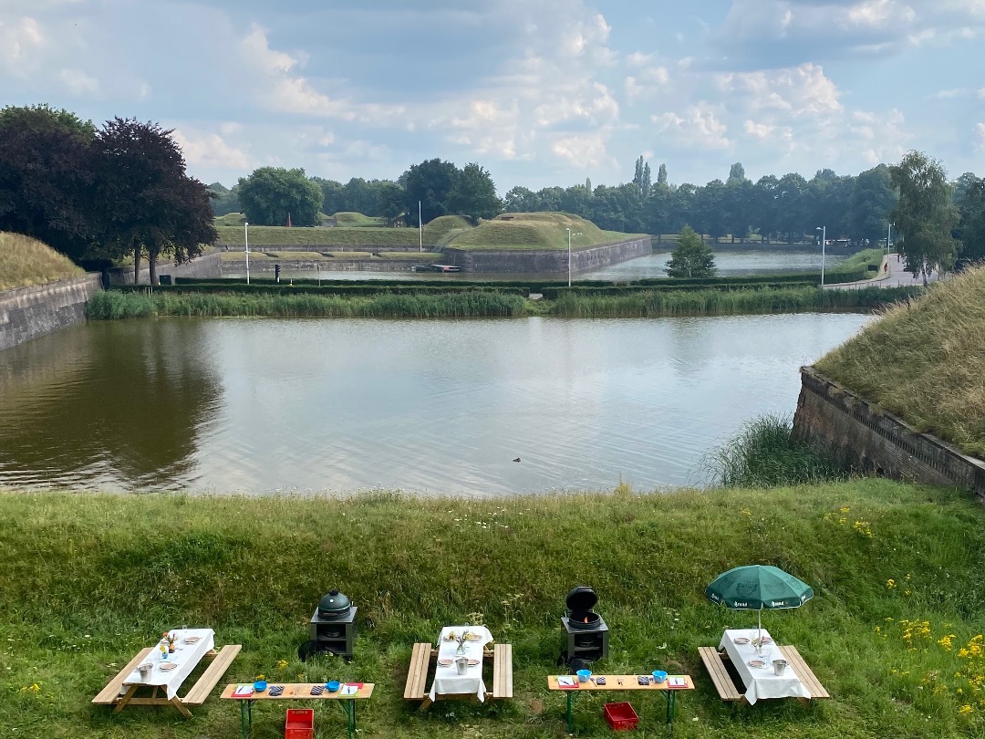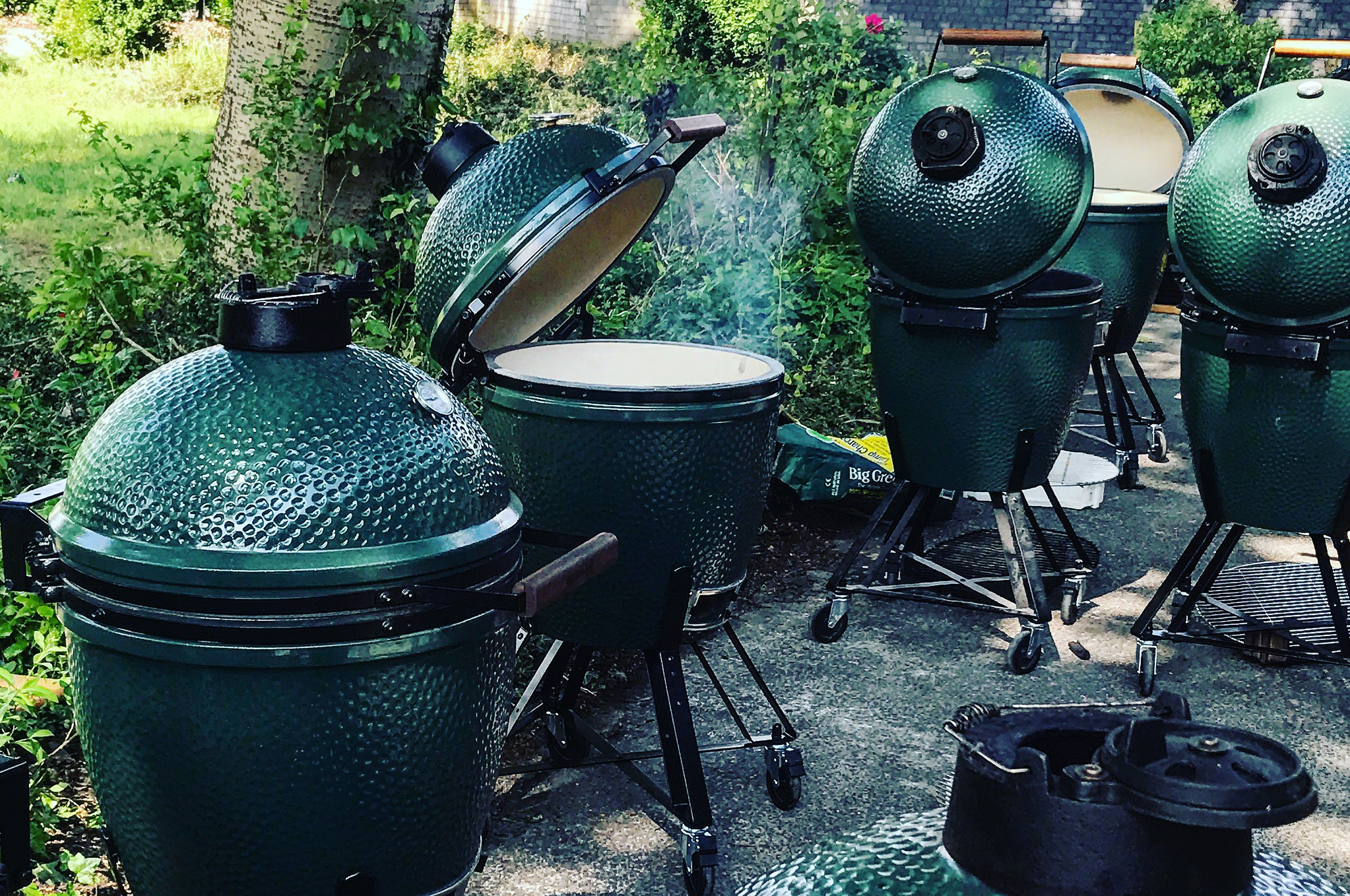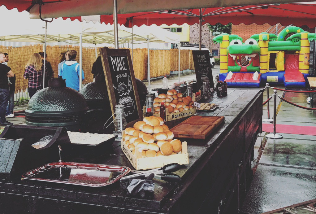 Ik heb een Grill on Wheels, een mobiele barbecue-keuken met 3 ingebouwde Big Green Eggs. Als de drie Green Eggs op de Grill on Wheels niet genoeg zijn, omdat u een partij heeft met meer gasten, dan heb ik nog 4 Big Green Eggs en een dubbele open oliedrumgrill. Het ligt dus niet aan de hardware en ook niet aan de 'software', want het vlees dat ik serveer komt van de slager, de vis van de visboer en de groente van het land. Dat klinkt voor de hand liggend, maar dat is het niet altijd.